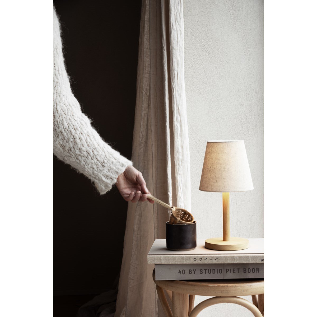 Tess to harmonijne połączenie natury i nowoczesności, które doskonale wpisuje się w skandynawski minimalizm. Podstawa wykonana z naturalnego drewna o jasnym odcieniu nadaje jej szlachetności, a stożkowy, beżowy abażur o wyraźnym splocie lnu miękko rozprasza światło, tworząc ciepłą atmosferę. Tkanina klosza została poddana specjalnej obróbce, dzięki czemu lampka jest odporna na warunki zewnętrzne – to idealny wybór zarówno do salonu, jak i na nastrojowy taras czy balkon. To także idealny sposób na oświetlenie stolika w restauracji.Sercem lampki jest energooszczędne źródło LED o ciepłej barwie (3000K), które emituje relaksujący blask sprzyjający odpoczynkowi. Wyposażono ją w ukryty pod kloszem 3-stopniowy ściemniacz dotykowy, pozwalający błyskawicznie dopasować natężenie światła do chwili.
