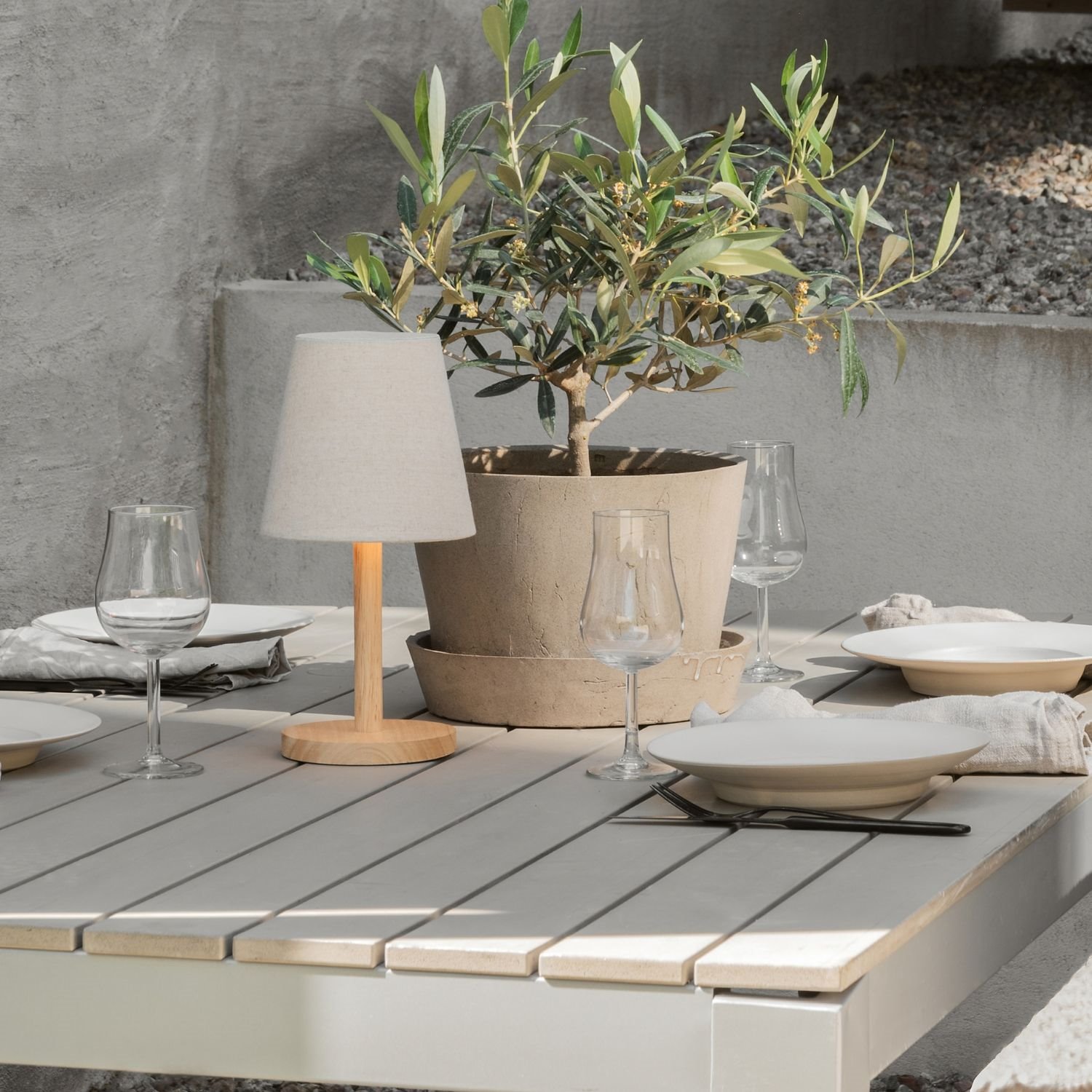 Brak widocznych przewodów sprawia, że Tess oferuje pełną swobodę aranżacji i doskonale prezentuje się w miejscach pozbawionych gniazdek elektrycznych, takich jak regały z książkami, parapety czy centralny punkt stołu podczas kolacji na świeżym powietrzu.