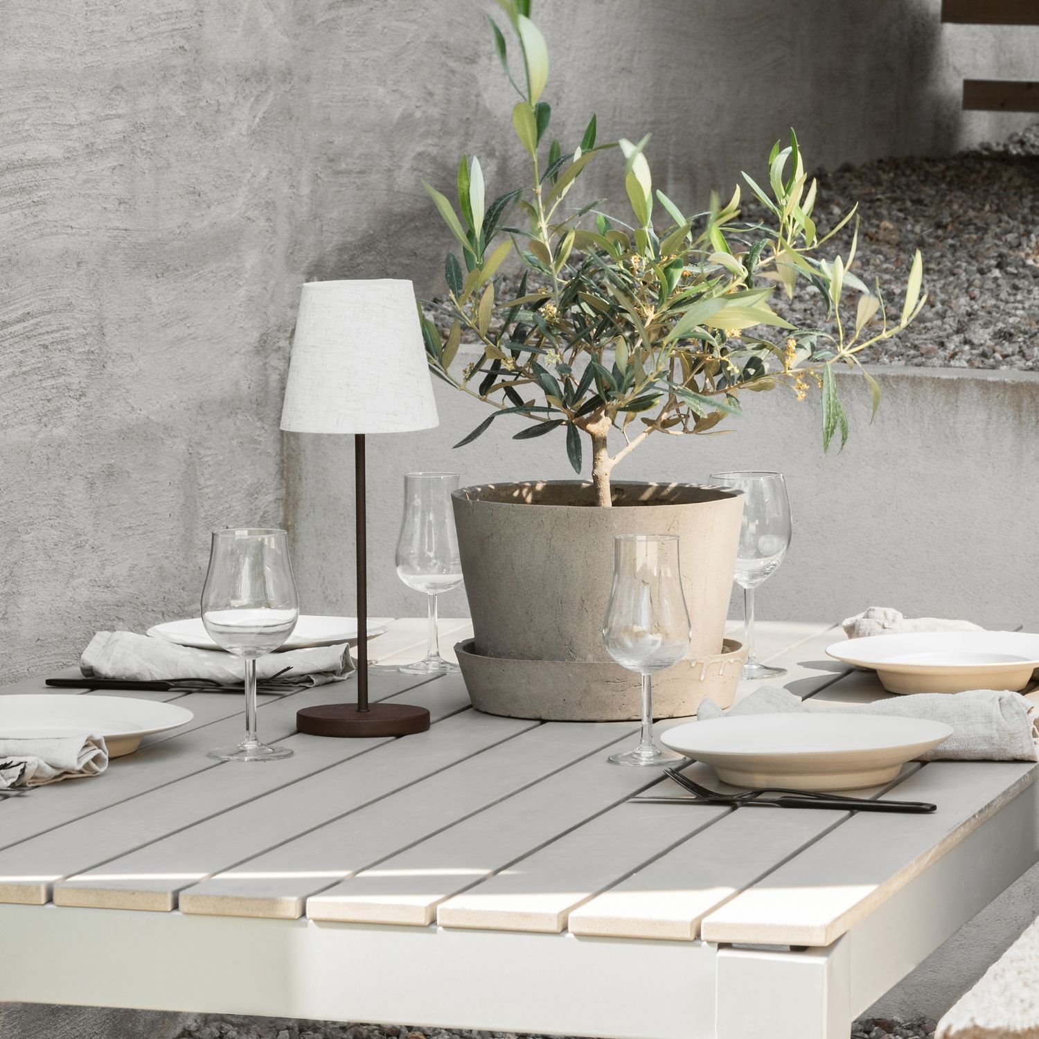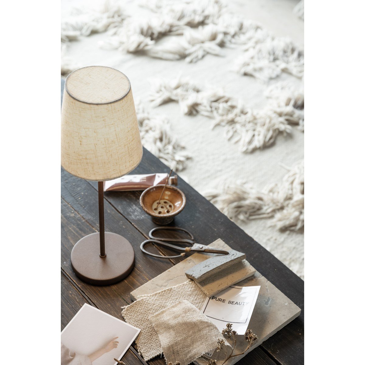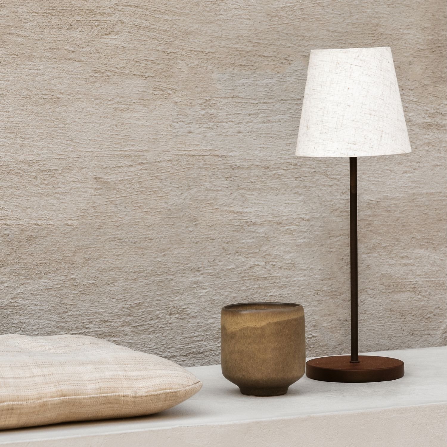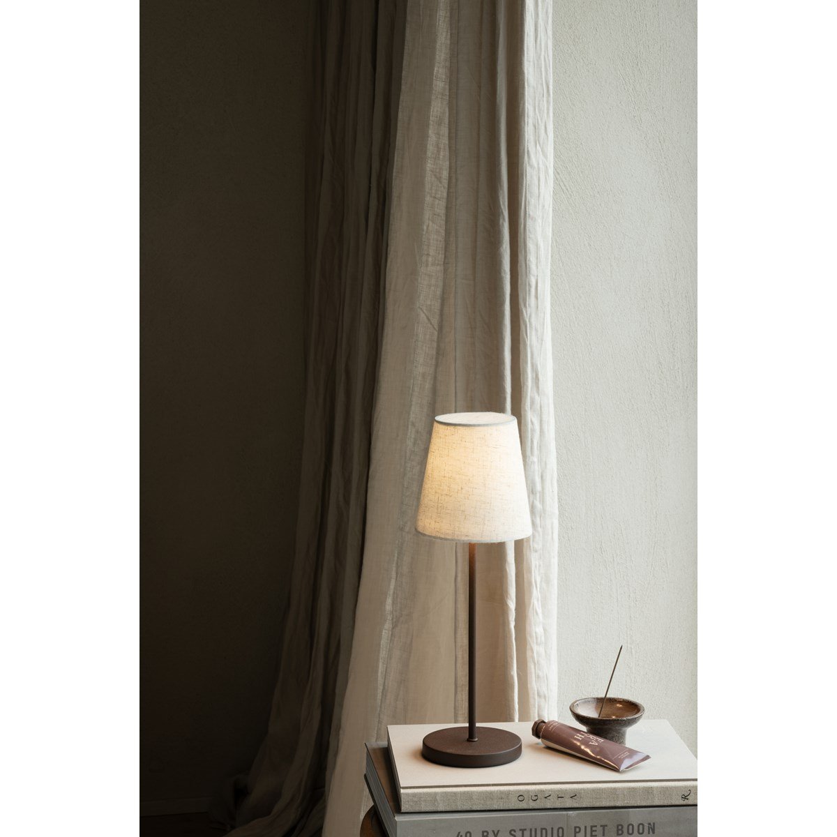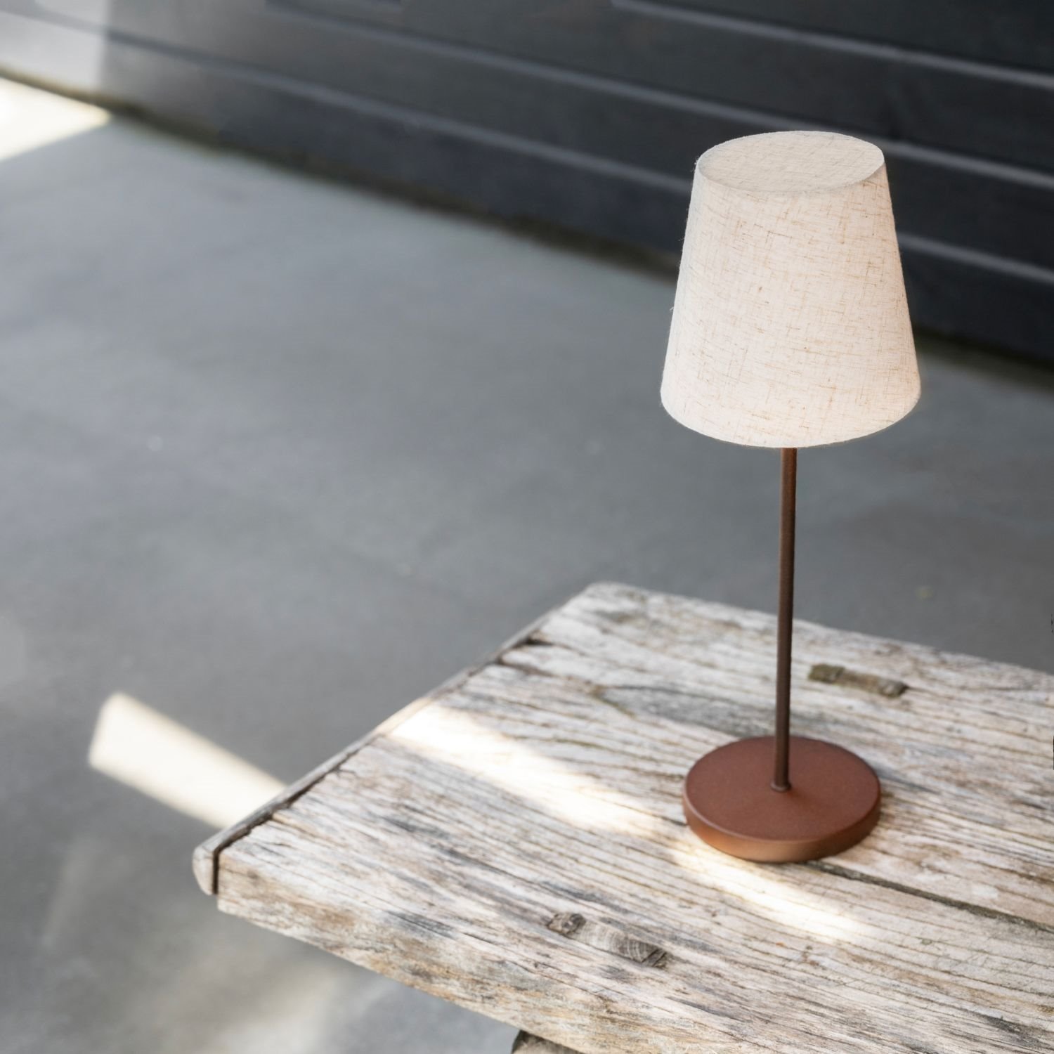 Tyra to mniejsza, niezwykle zgrabna odsłona nastrojowego oświetlenia, która udowadnia, że styl nie wymaga kabli. Ta kompaktowa lampka przenośna została zaprojektowana, by wnosić przytulność wszędzie tam, gdzie tradycyjne oświetlenie nie sięga – od parapetów i regałów, aż po środek stołu w jadalni, gdzie stanowi bezpieczną i elegancką alternatywę dla klasycznych świec. Jej konstrukcja opiera się na stabilnej, lakierowanej metalowej podstawie w matowym wykończeniu oraz klasycznym, beżowym abażurze o wyraźnej teksturze lnu, który pięknie rozprasza światło, eliminując efekt olśnienia.Pod tekstylnym kloszem kryje się nowoczesne serce lampy: zintegrowane źródło LED o ciepłej barwie oraz dyskretny przycisk dotykowy. Dzięki 3-stopniowej regulacji jasności, Tyra z łatwością dopasuje się do Twoich potrzeb – od intensywnego blasku idealnego do wieczornej lektury, po subtelną poświatę, która może towarzyszyć Ci przez całą noc. Jest to doskonały wybór nie tylko do wnętrz, ale również jako nastrojowe oświetlenie tarasu czy balkonu.