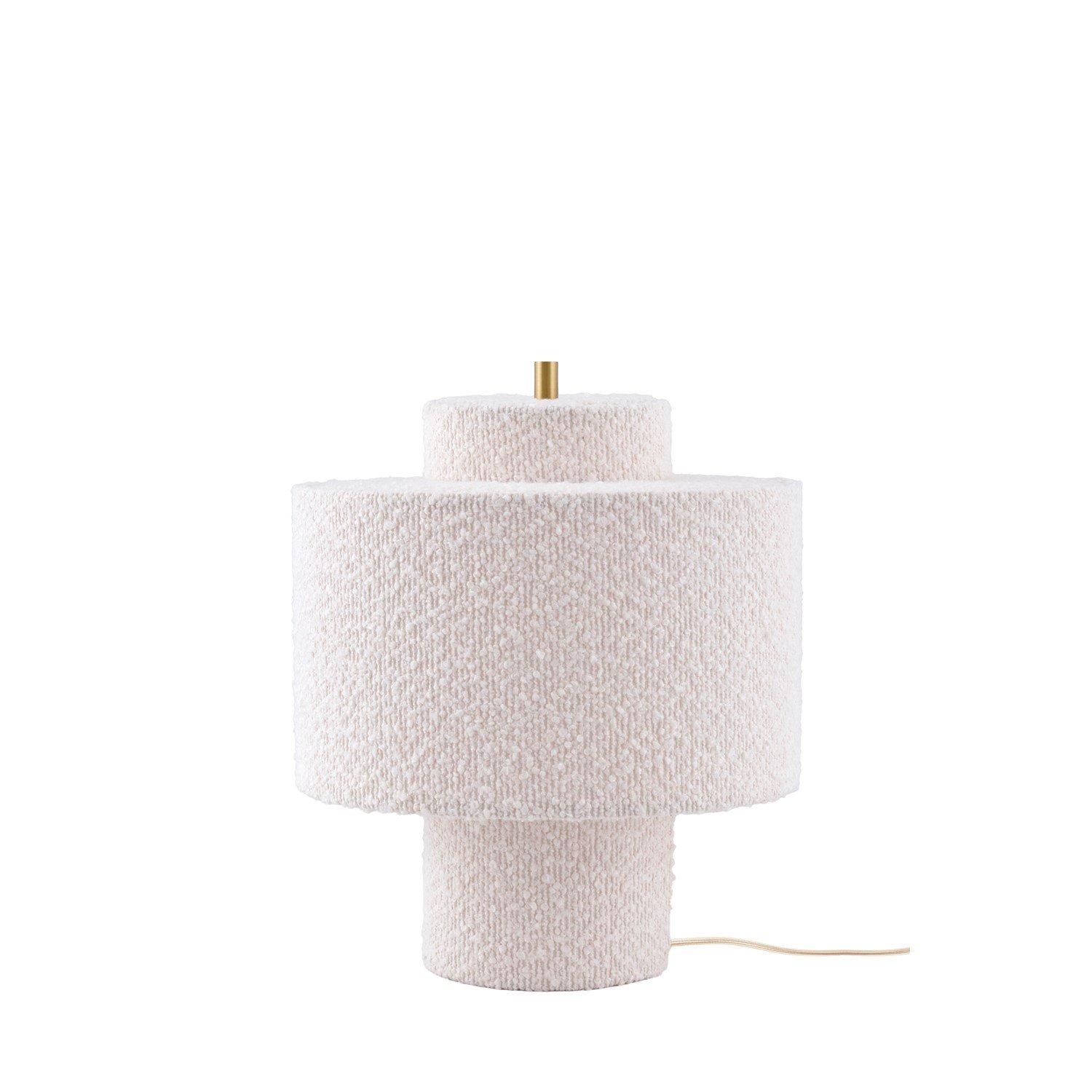 Elegancka kremowa lampa stołowa boucle - styl japandi i modern classic