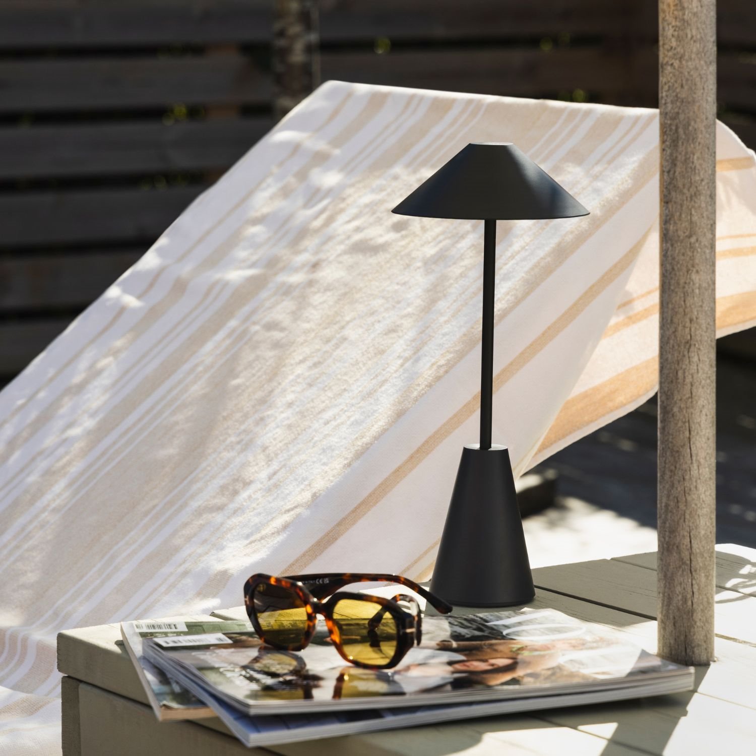 Czarna zewnętrzna lampka stołowa akumulatorowa IP54